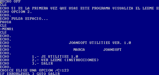 * Joansoft Utilities (Proceso por lotes, MS-DOS) [Conjunto de opciones para manejar el sistema operativo a través de menús]